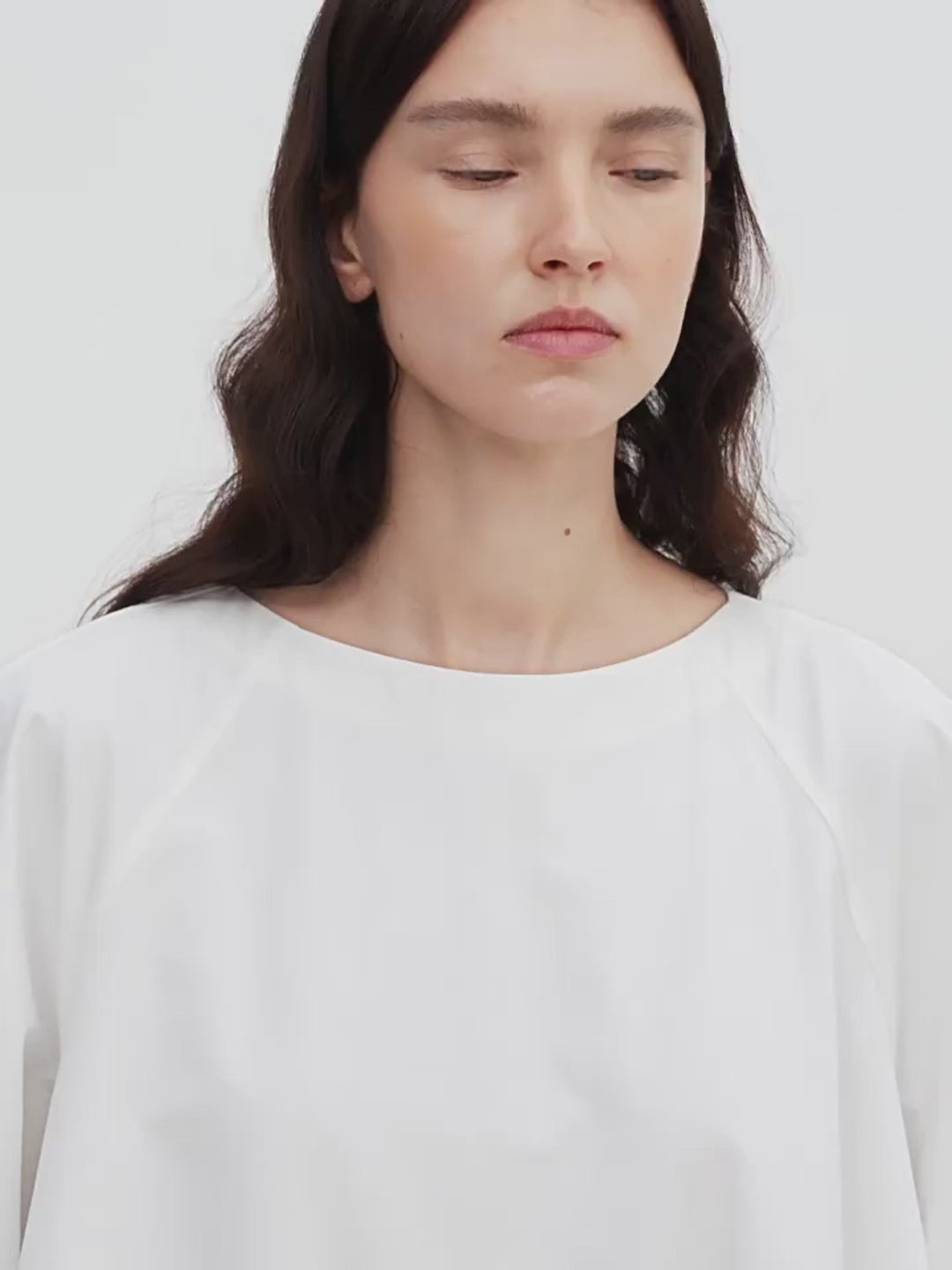 Textured long-staple cotton fabric, dry and soft to the touch, washed to create a slightly frosted visual effect, comfortable and stylish, simple round neck with three-dimensional puff sleeve shape, romantic and elegant, extremely dreamy, rich pleats on the skirt to create a full puffy skirt shape, irregular skirt shape is more artistic.