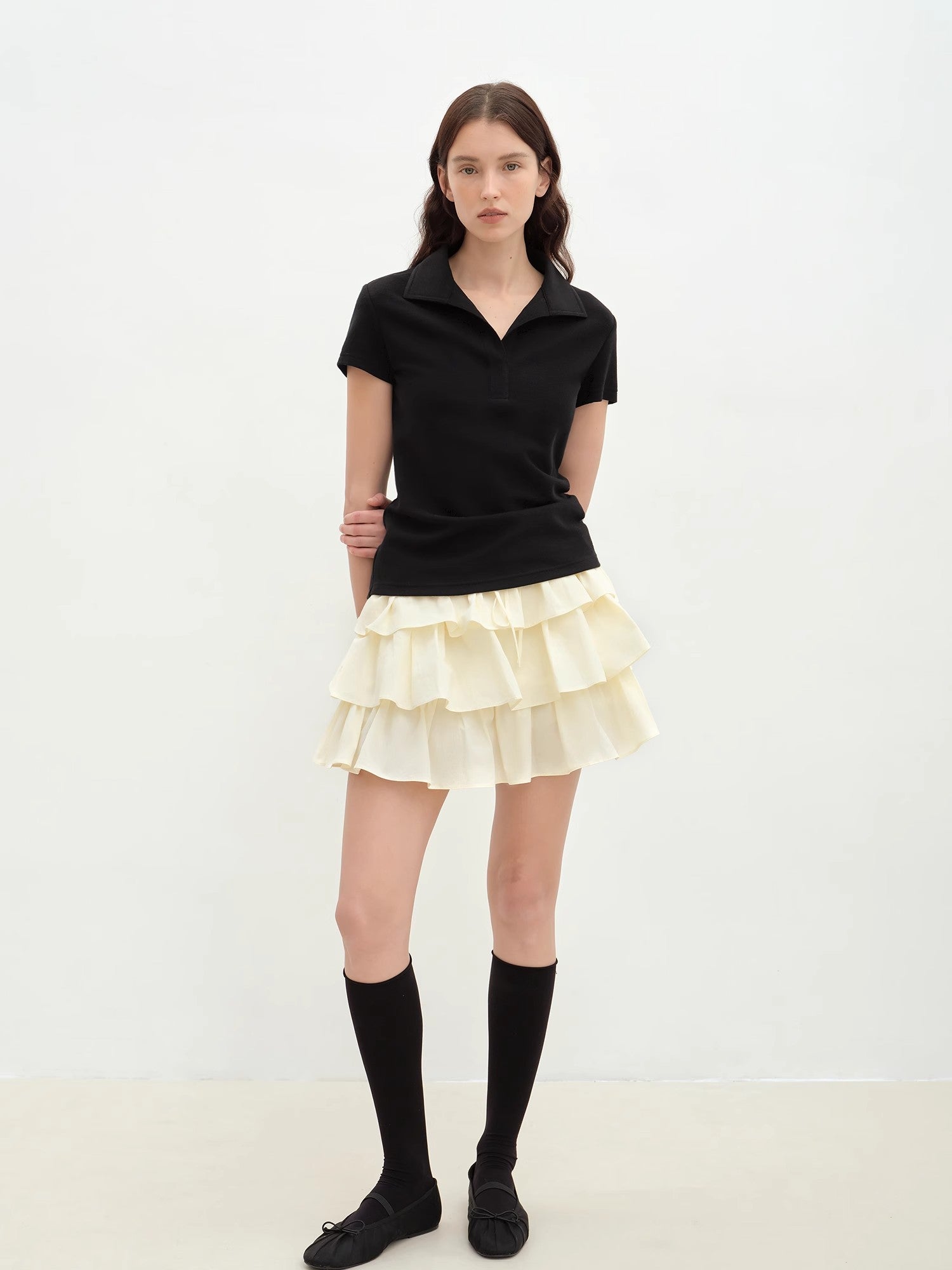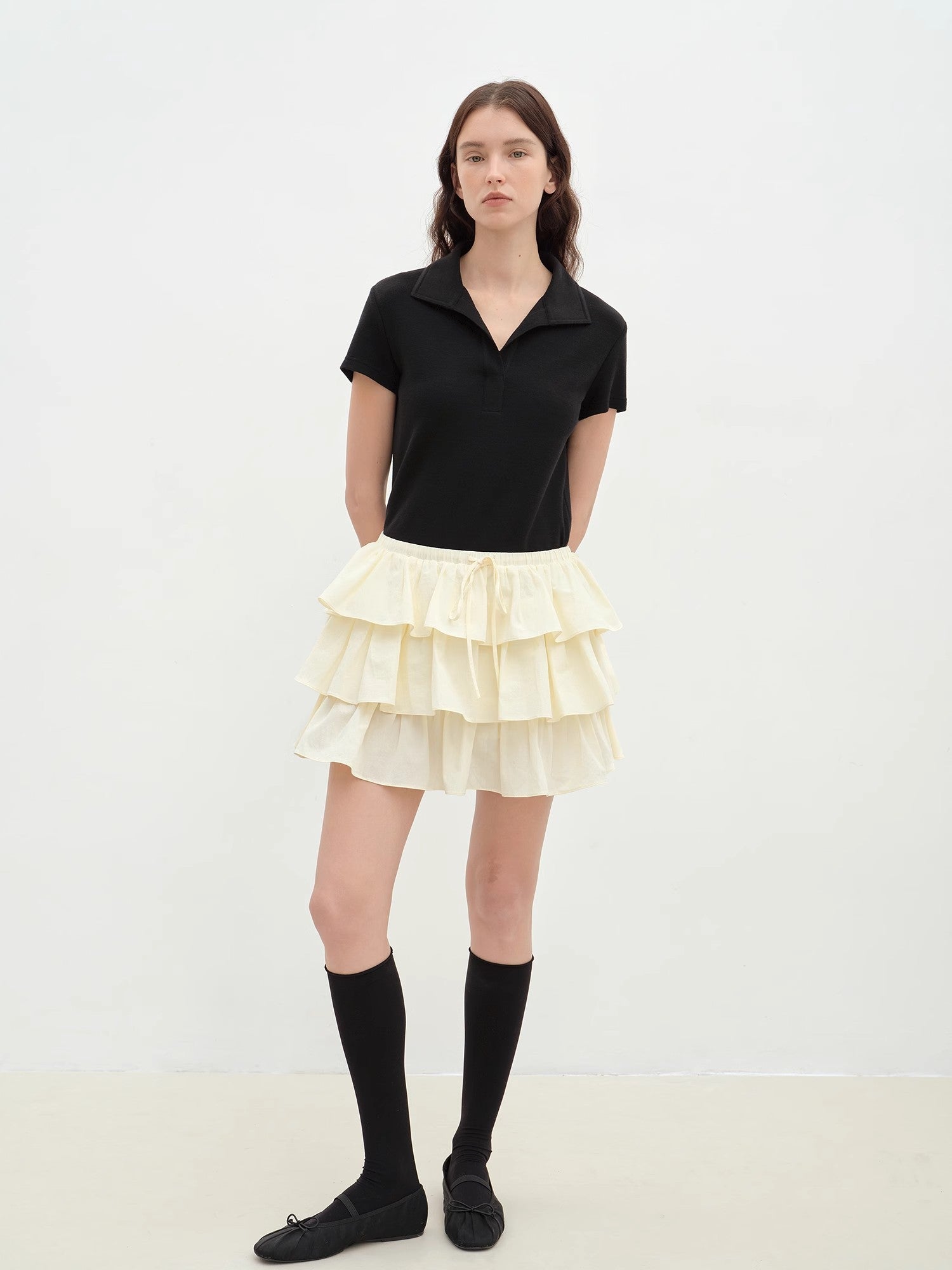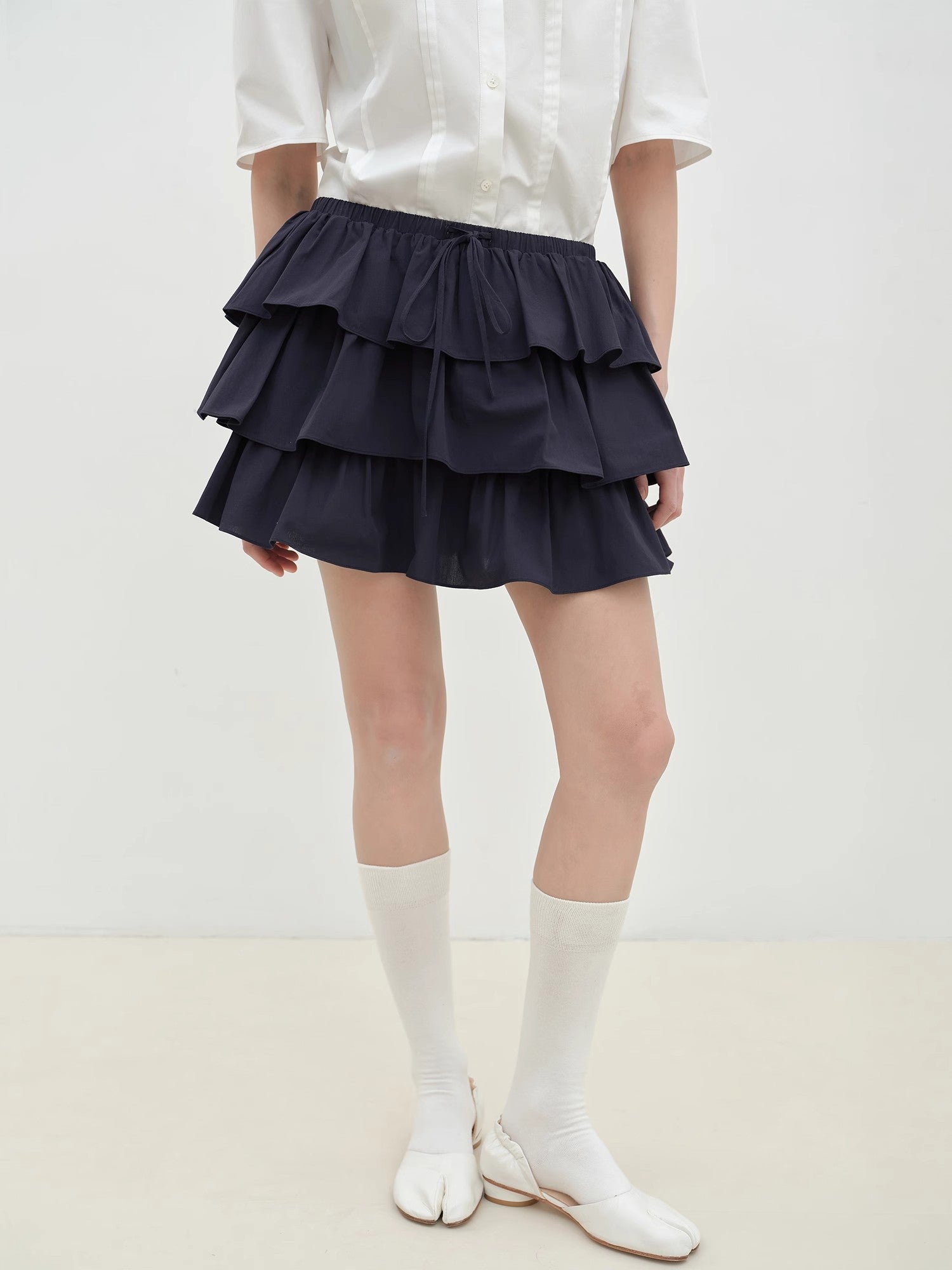Cotton and linen visual style fabric, high-density weaving, smooth and stylish, skin-friendly, breathable and comfortable, uniform pleats create a playful lace feeling, three layers of lace stacked to create a cake-like skirt shape, smart and age-reducing narrow elastic waist casual and comfortable, color-matching drawstrings add agility, age-reducing and elegant without losing the sense of design.