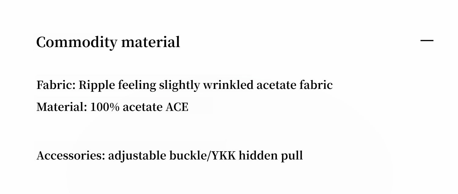 Heavyweight pure acetate fabric: comfortable, soft, smooth, and cool to the touch, with excellent drape and easy maintenance for a naturally refined style.