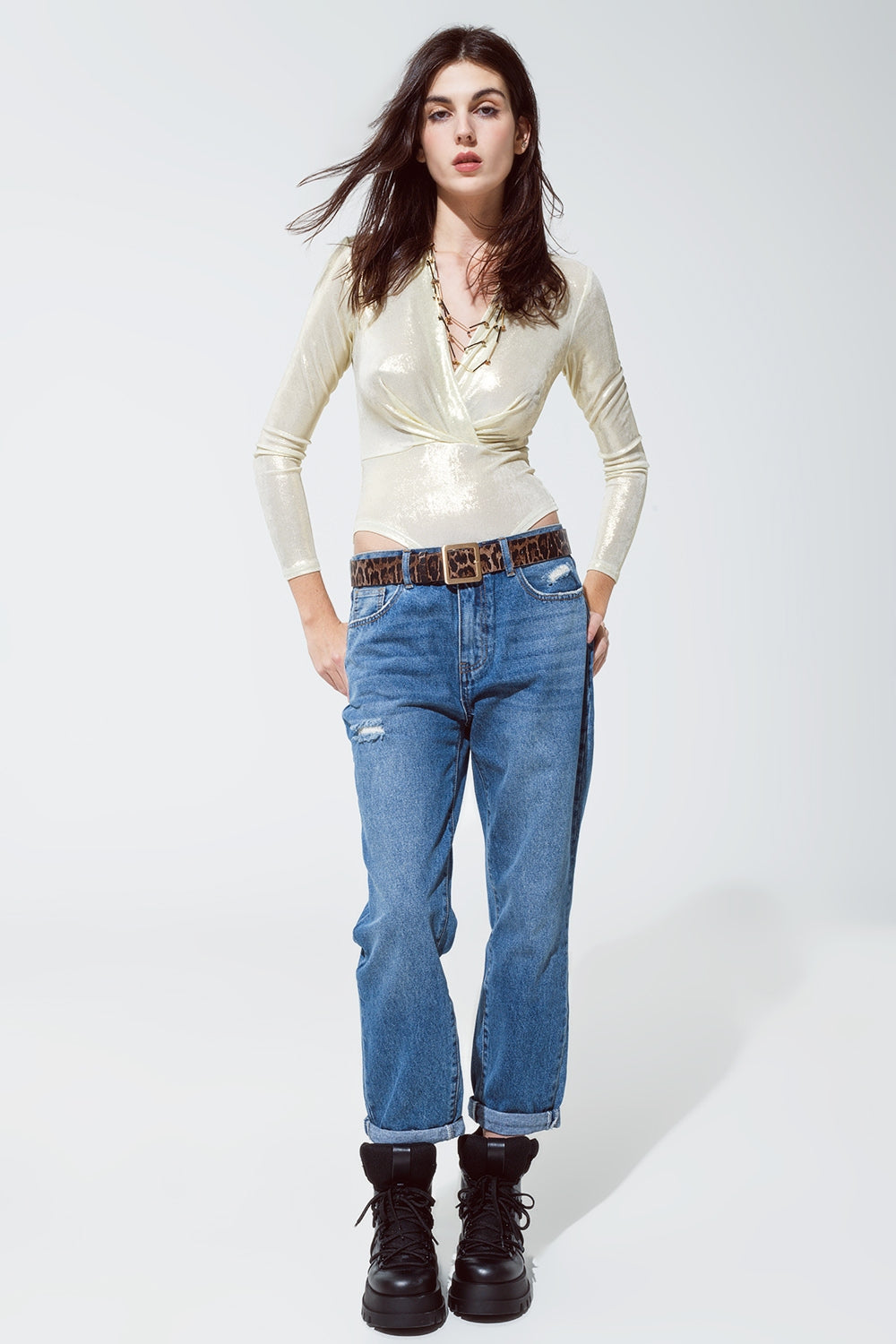 Subcategory: Bodysuit. Collar: V-neck neckline. Sleeves: Long Sleeves. Fit: Bodycon fit. Style: Party. Detail: Metallic Finish. Fabric: Lurex. runs true to size. S.