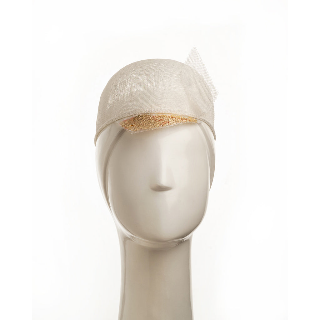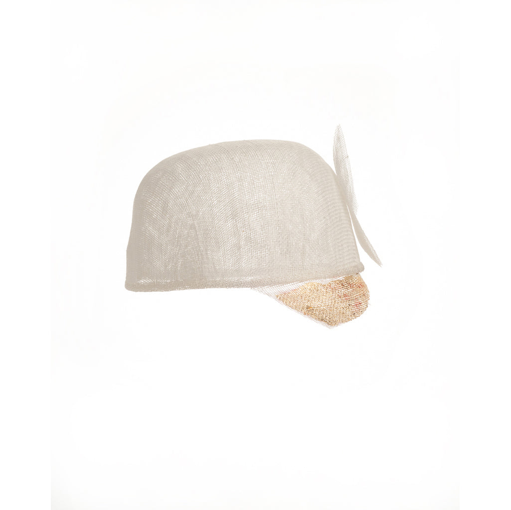 Another unconventional way to treat the CAP's classic shape. A precious accessory, ornated with gilded foils, often used in Orthodox iconography. A discreet aura for urban goddesses. Sewn entirely by hand, all numbers raging from 54 to 59 can be made.