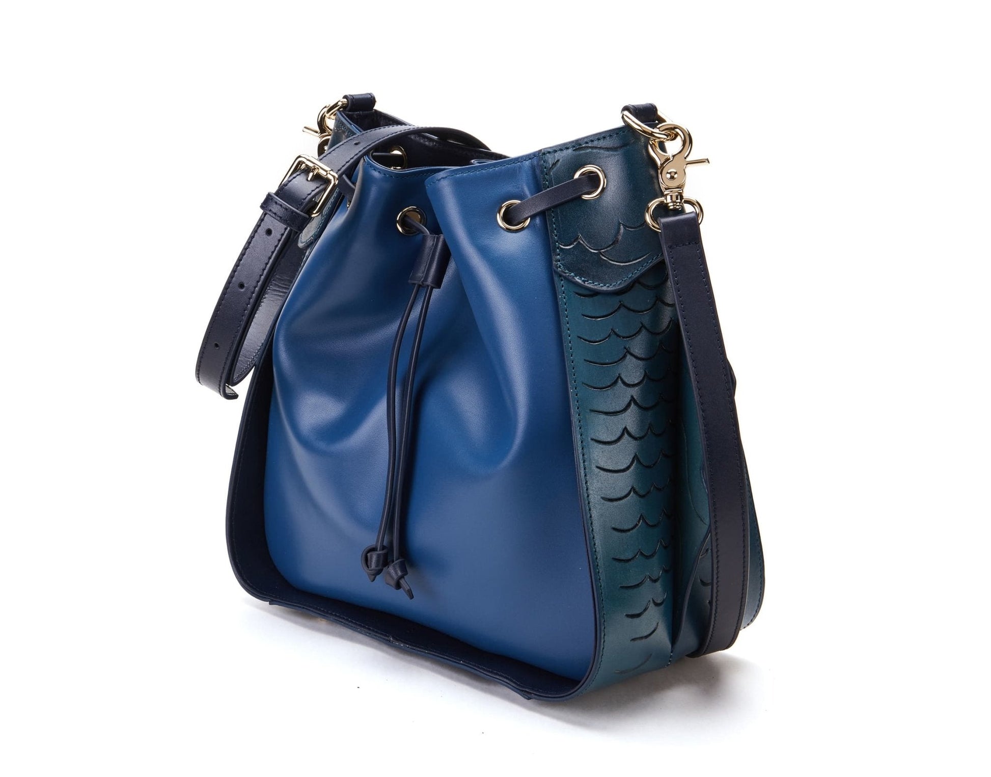 Immerse yourself in the world of refined elegance with our Carp Blue Bag, a true testament to luxurious craftsmanship. Handcrafted from premium full-grain leather, this unique Carp Blue Bucket bag captures the essence of the magnificent Asian carps. Its generous compartment and interior zip pocket provide ample space for your essentials, while the classic drawstring closure adds a touch of timeless allure. Complete with a detachable and adjustable crossbody strap, this exquisite bag effortlessly combines style and practicality.