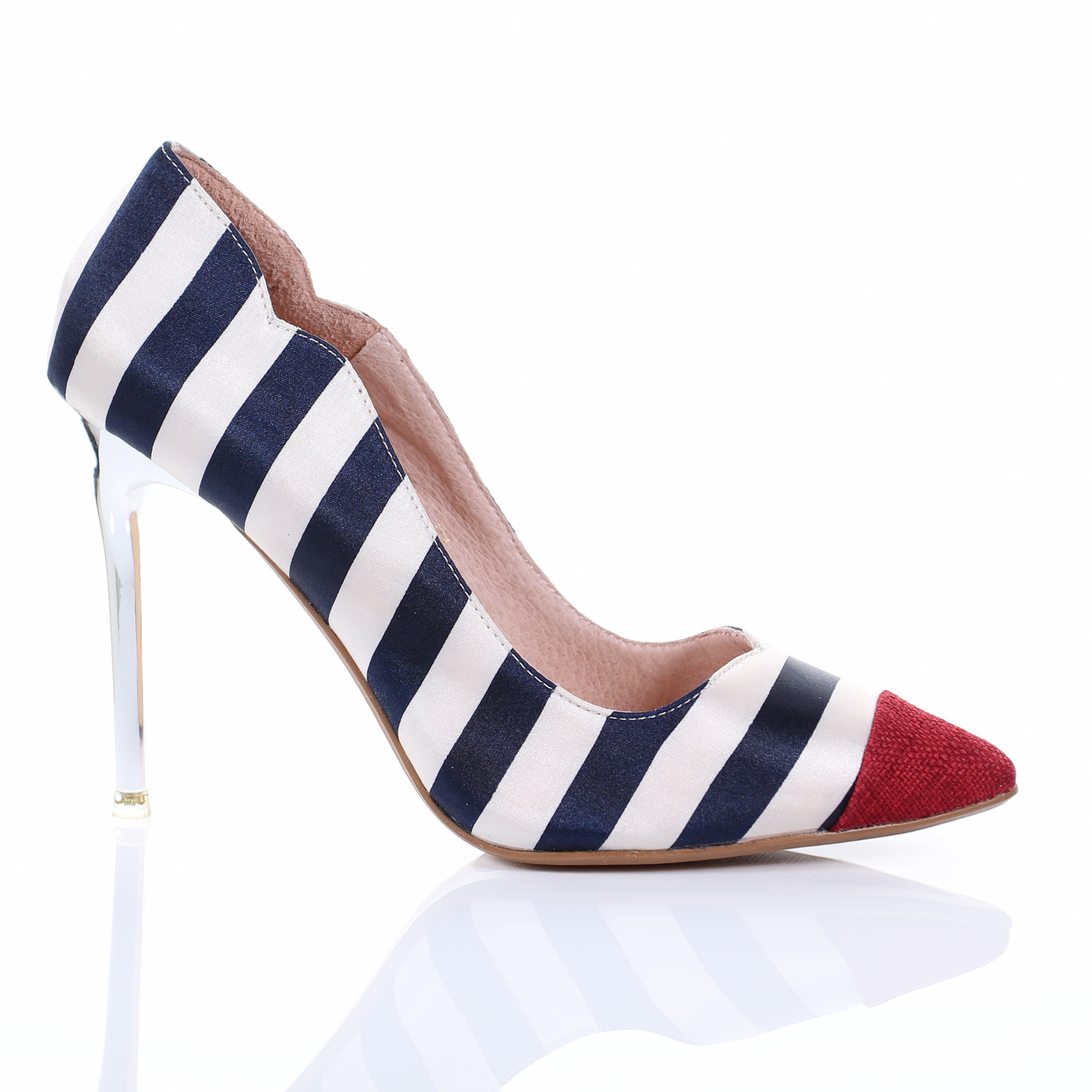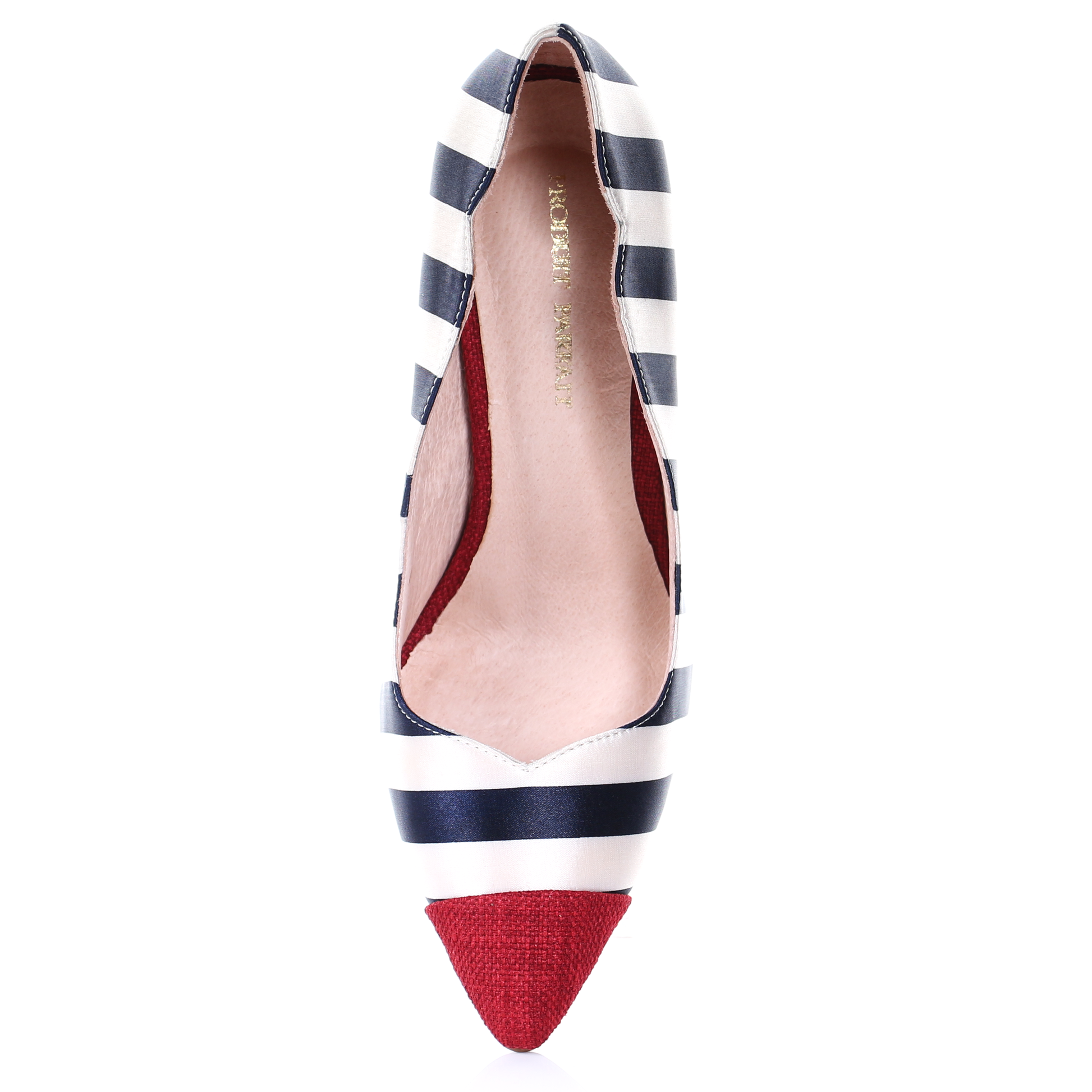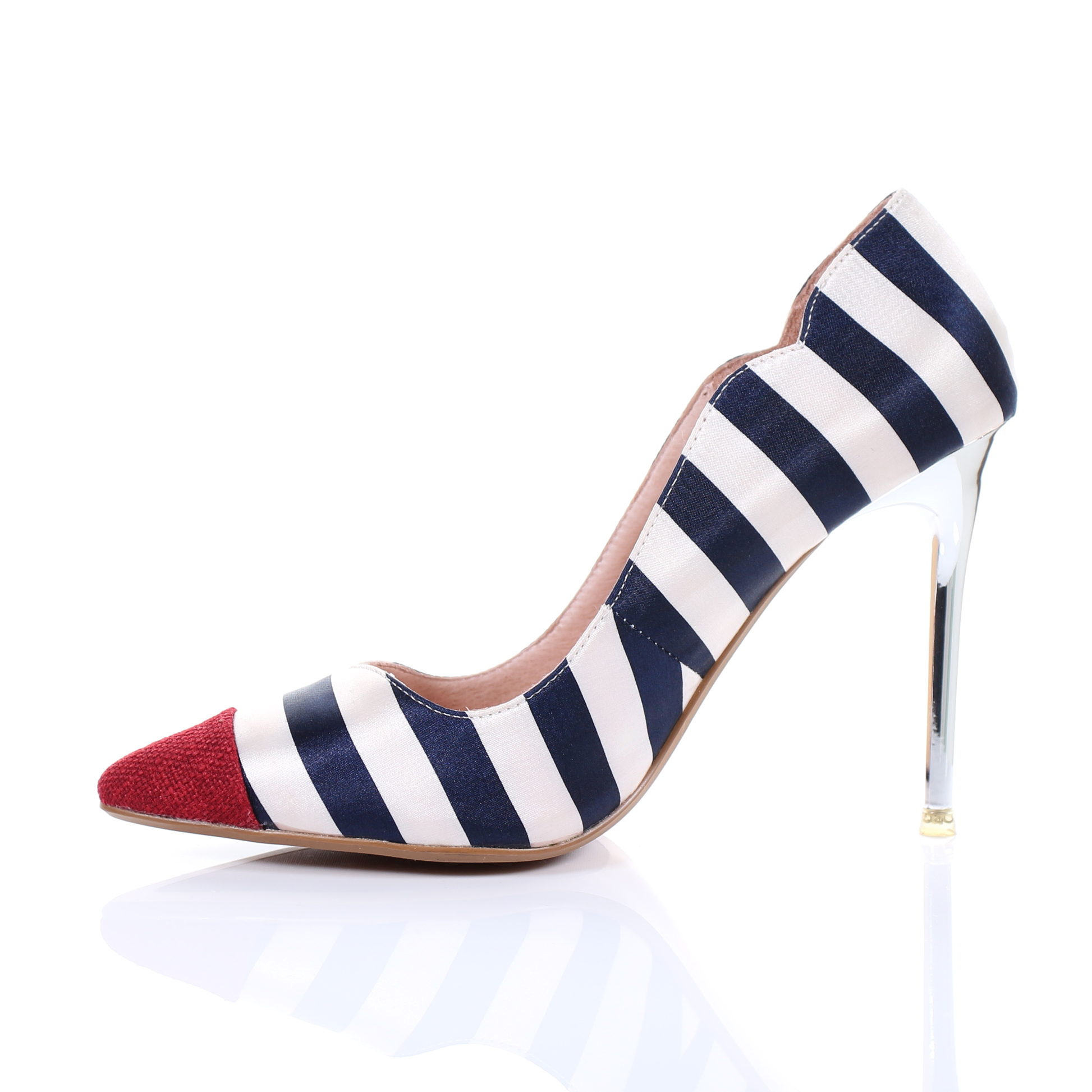 Chrome Heel Two Tone Pointed Toe Pumps (Red)