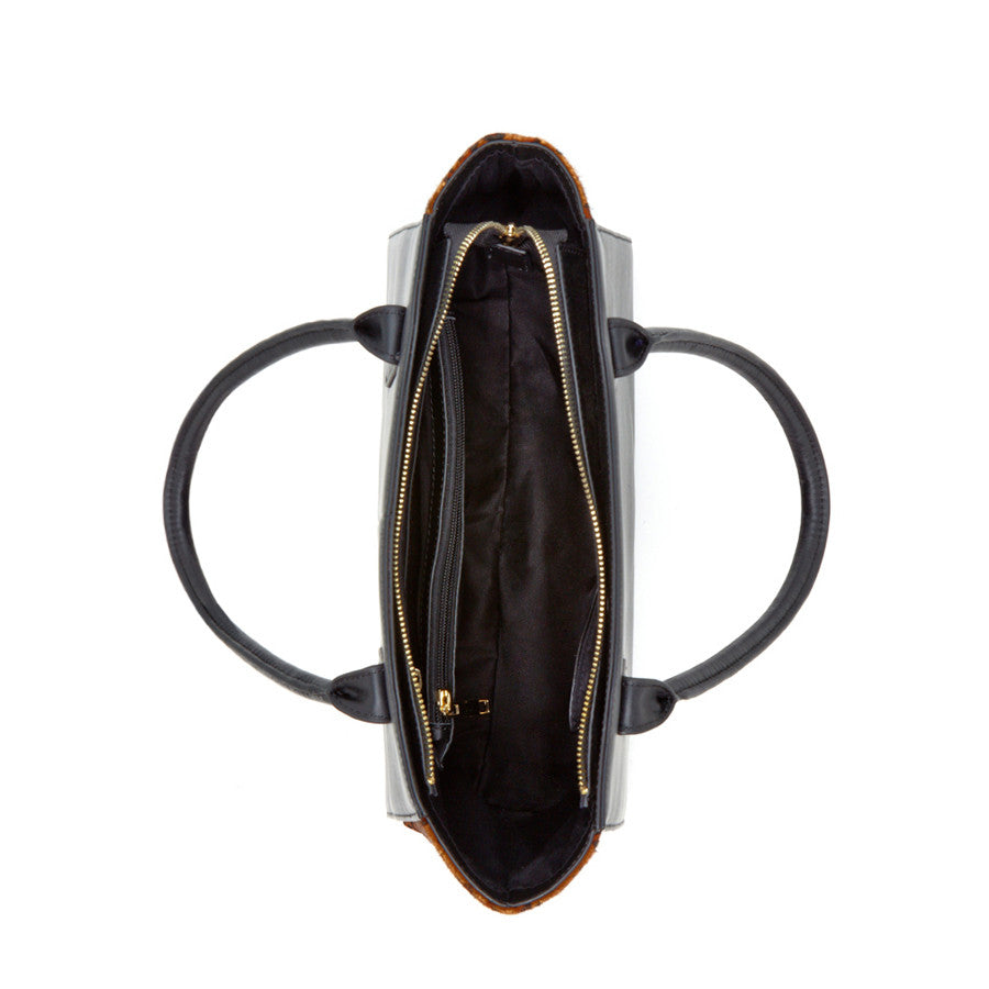 The Jody is a highly versatile color-blocked tote bag and ready to mix and match with all of your favorite ensembles. Fashioned out of luxurious genuine leather, it is secured by a top zip closure. Its fabric-lined interior is outfitted with 2 interior zipper pockets and 2 interior cell phone slips to keep you organized all day long. The double handles let you slip the back onto your shoulder, arm or wrist for versatile carrying.