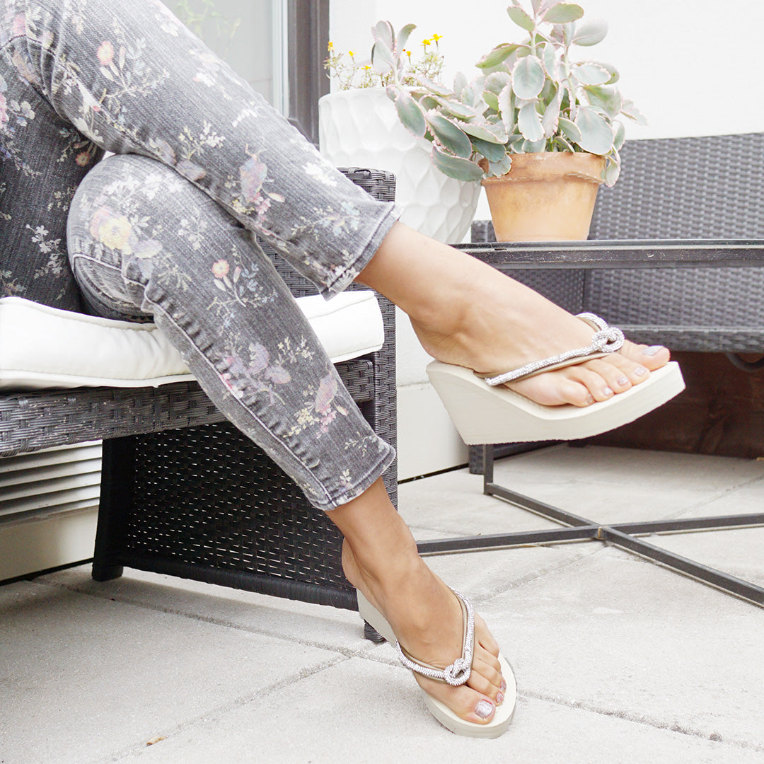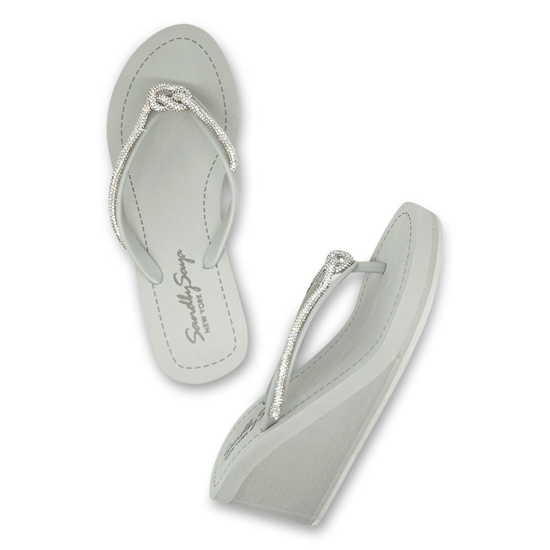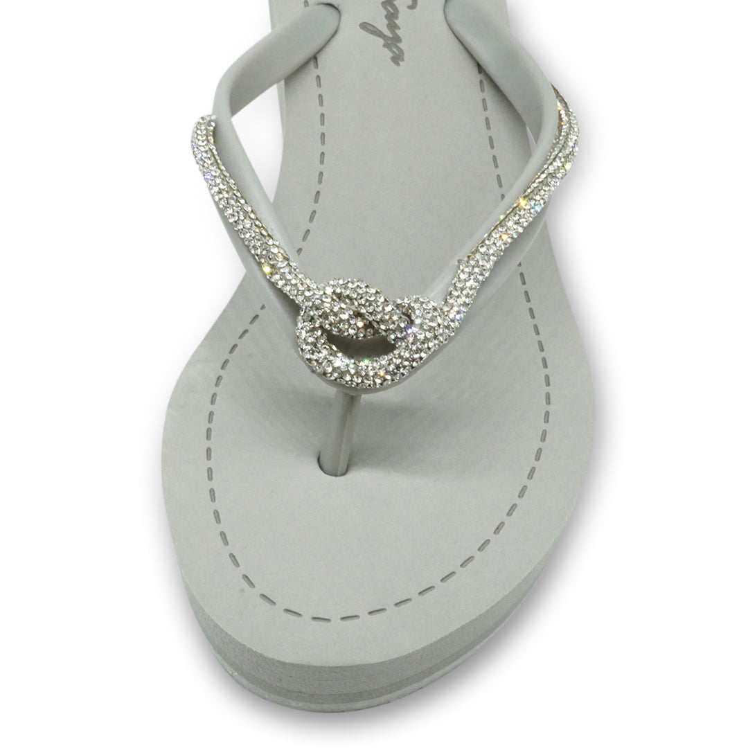Knot_ Rhinestone Crystal Rope Embellished Women's High Wedge Flip Flops Sandal
