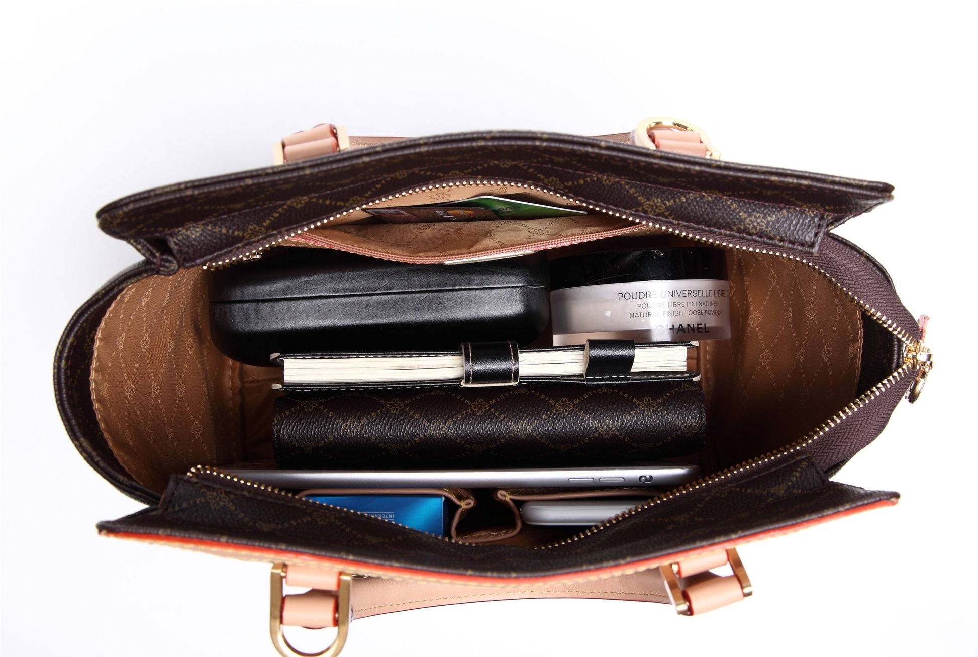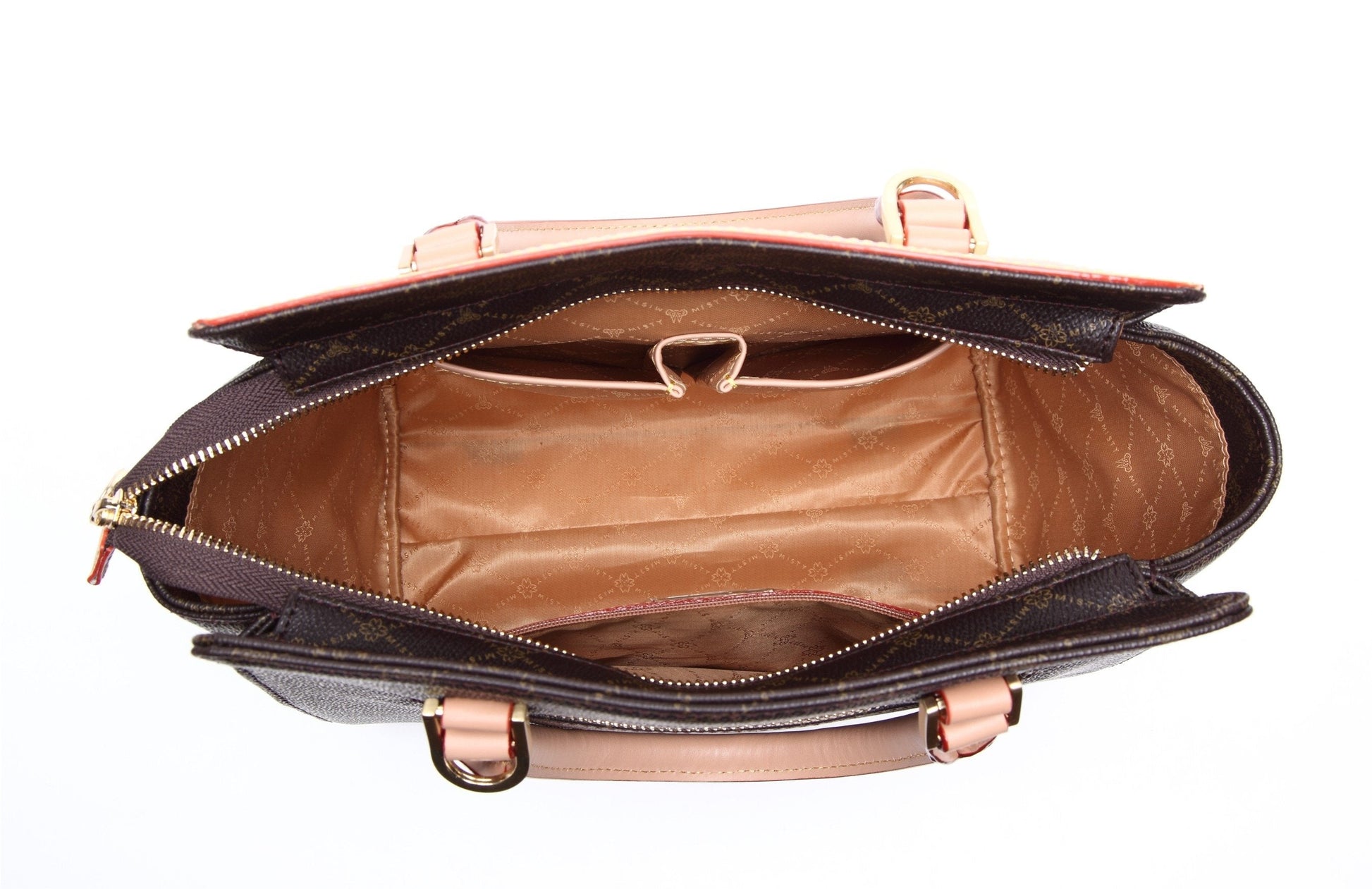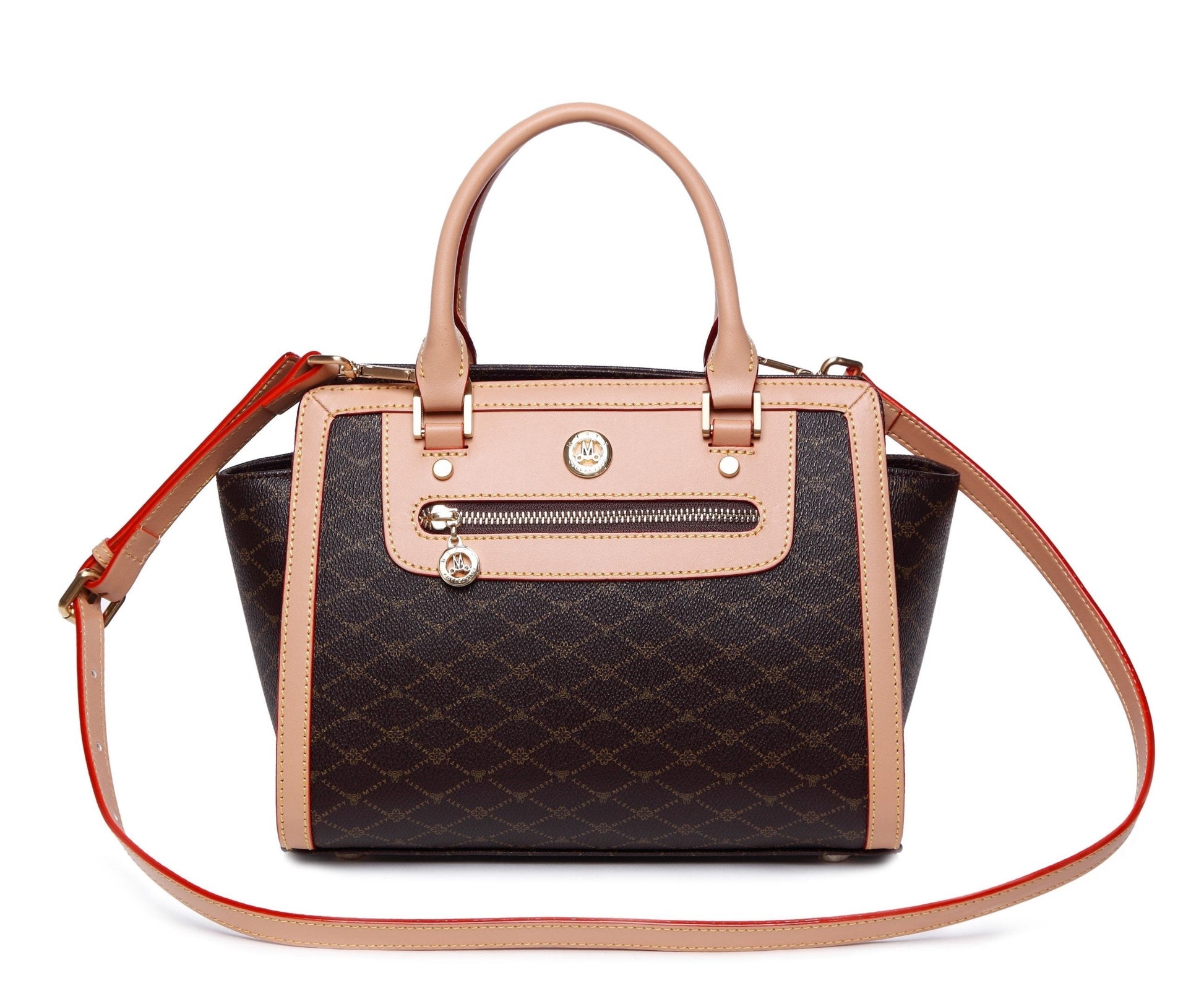 Misty U.S.A. Handbags are made from genuine bonded leather with gold plated accessories. The bag’s perfect convenient size, perforated Monogram pattern, and multi pocket interior make it modern, desirable and trendy. It's leather bag handle enables a hand or elbow carry while the removable and adjustable leather strap a shoulder or cross-body wear.