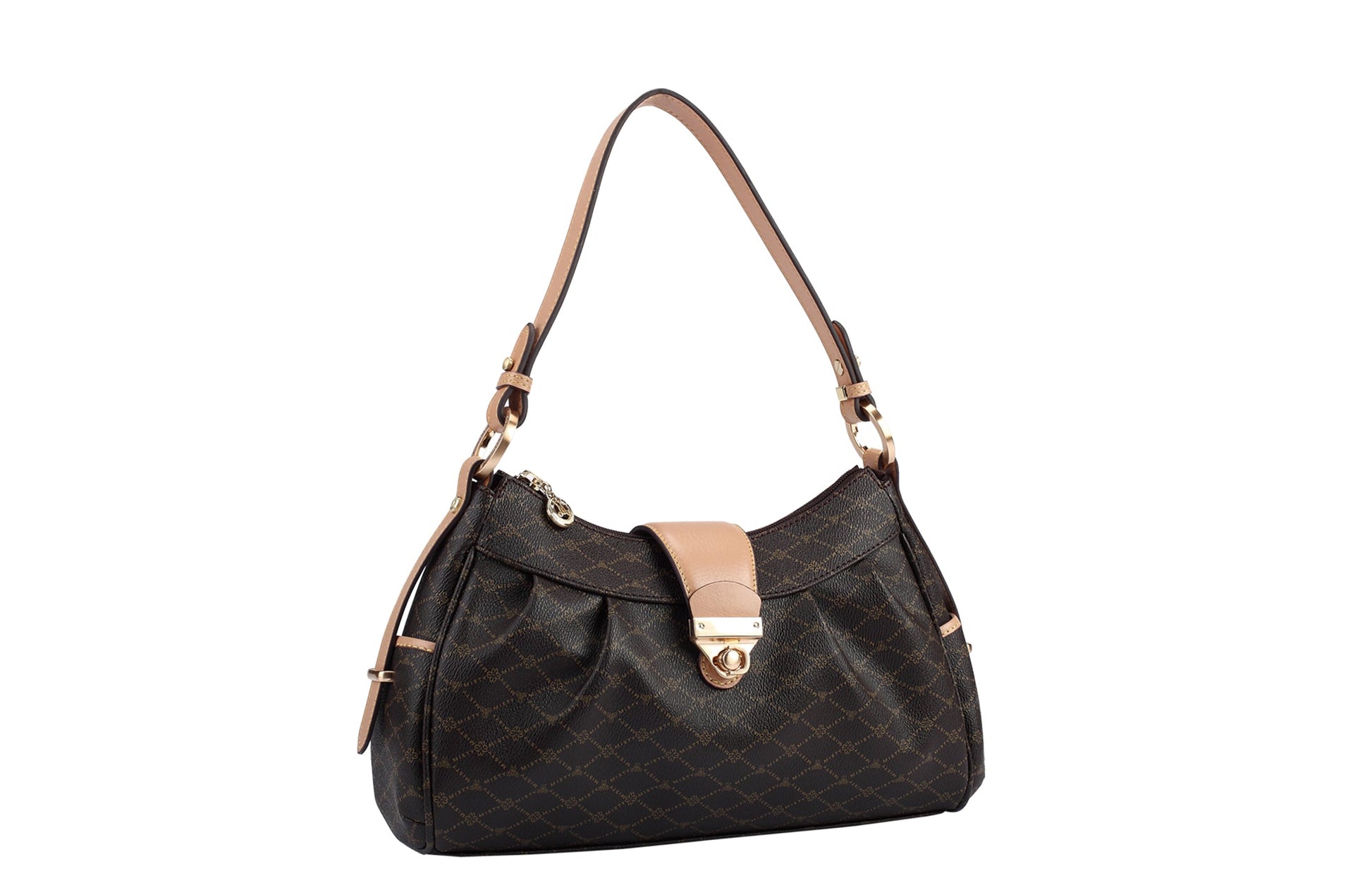 Misty U.S.A. Handbags are made from genuine bonded leather with gold plated accessories. The bag’s perfect convenient size, perforated Monogram pattern, and multi pocket interior make it modern, desirable and trendy. It's leather bag handle enables a hand or elbow carry.