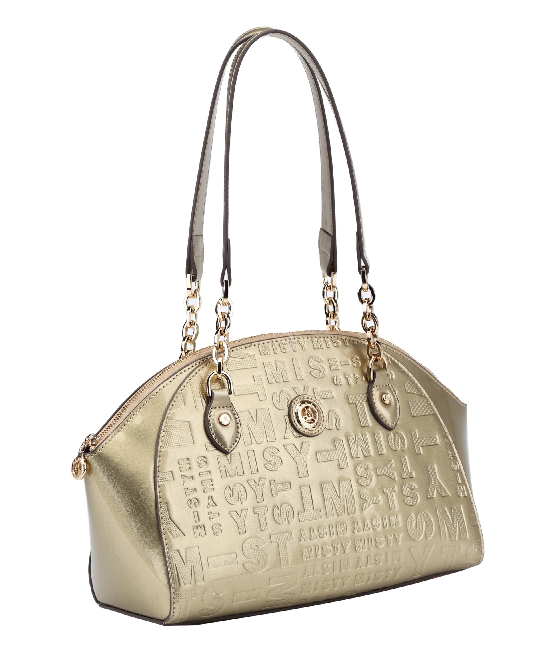 Misty U.S.A. Handbags are made from genuine leather with gold plated accessories. The bag’s perfect convenient size, metallic gloss face, and multi pocket interior make it modern, desirable and trendy.