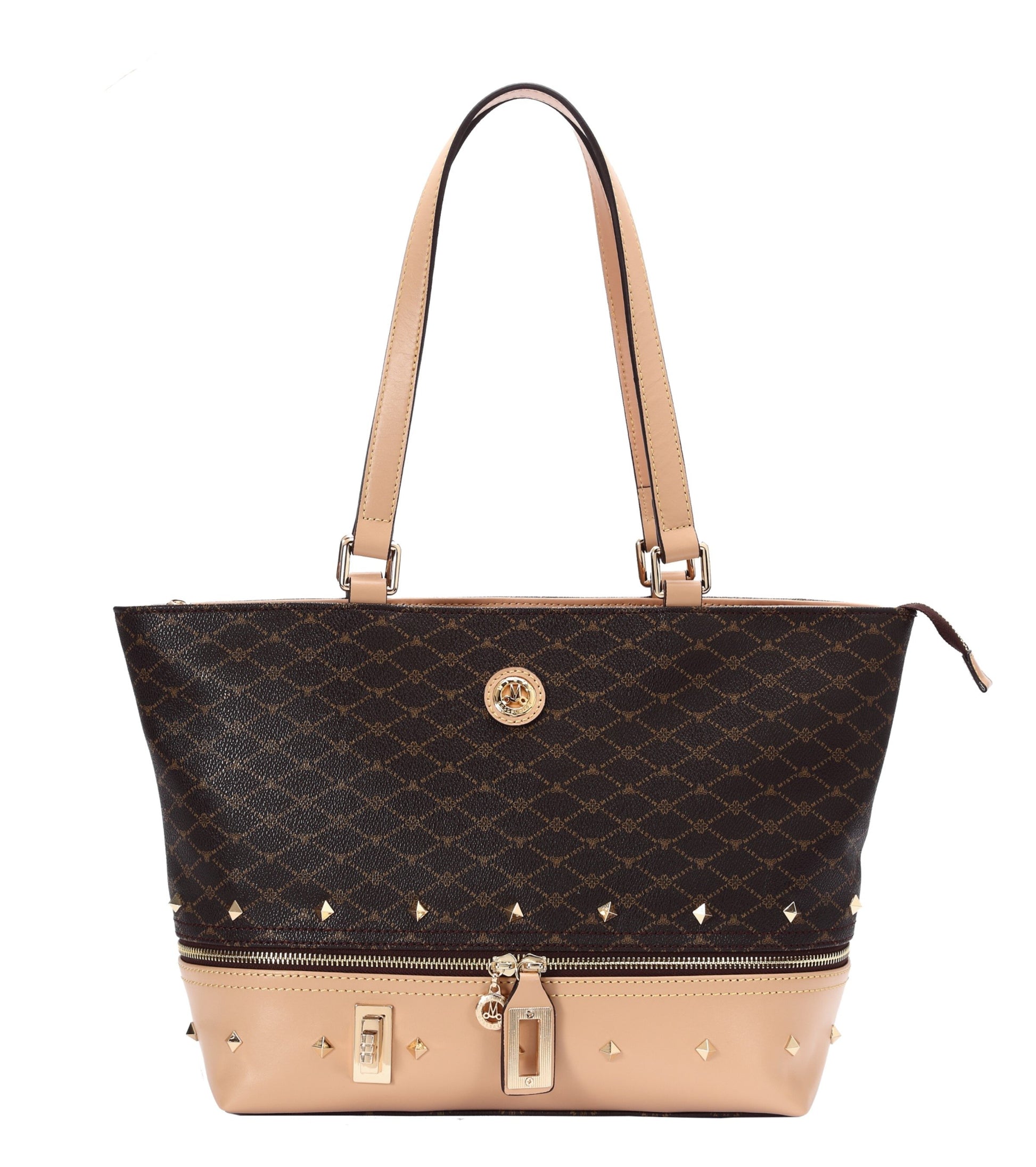 Misty U.S.A. Handbags are made from genuine bonded leather with gold plated accessories. The bag’s perfect convenient size, perforated Monogram pattern, and multi pocket interior make it modern, desirable and trendy. It's leather bag handle enables a hand or elbow carry.Â
