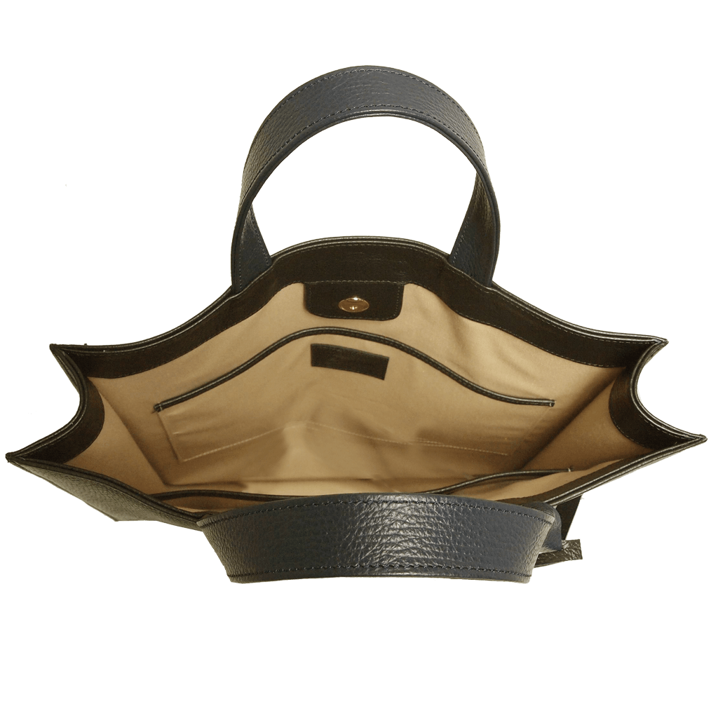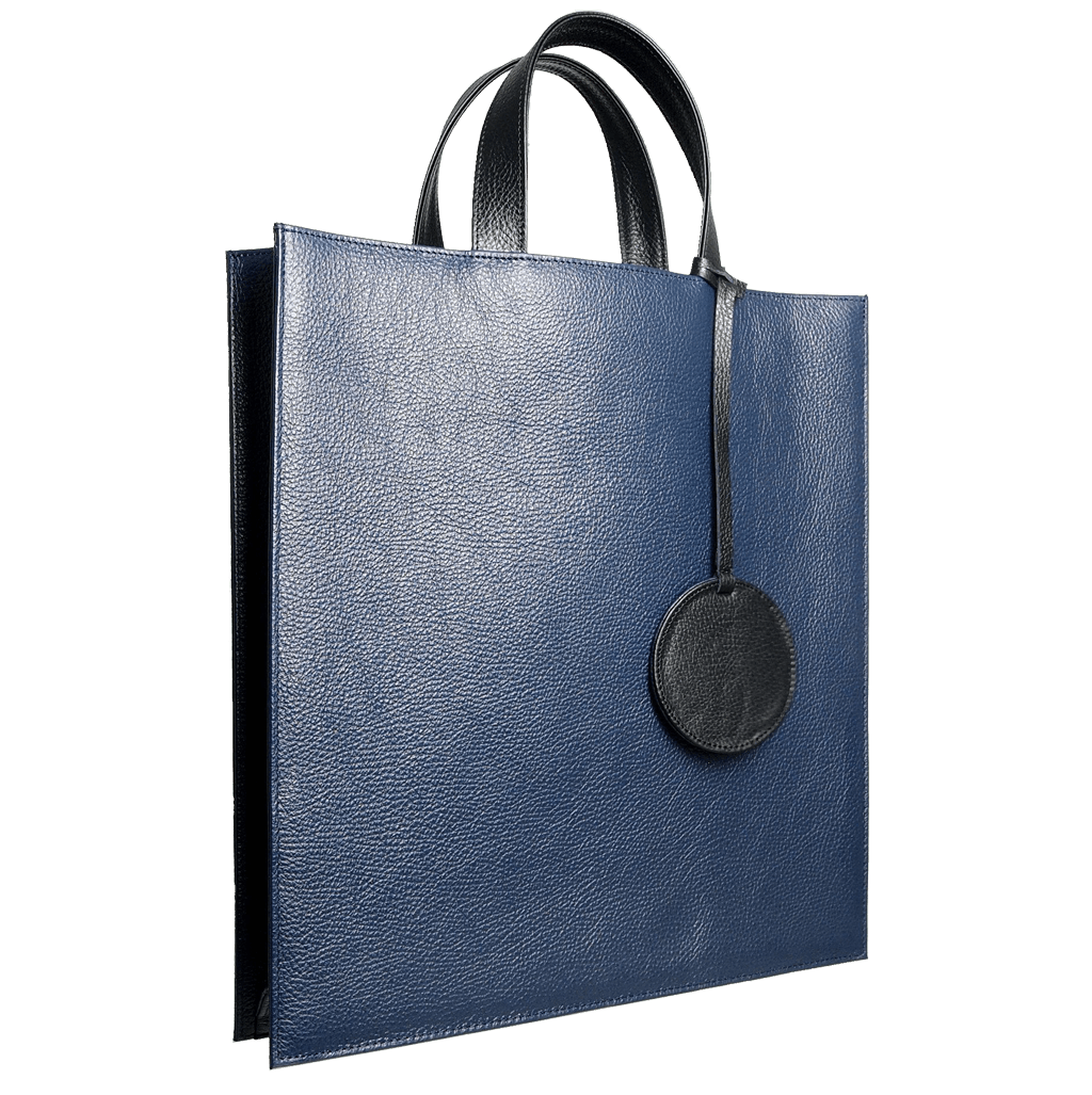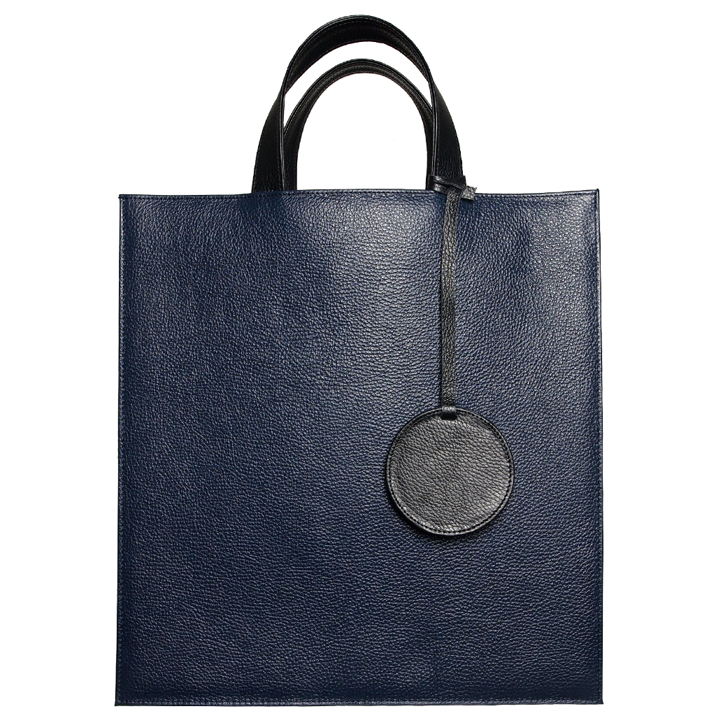 A lightweight and sleek tote, made from hard-wearing top-grain leather with a handily detailed interior. Contrasting leather handles and a bi-colored geometrical bag charm adds a playful touch to this elegant carry-all.