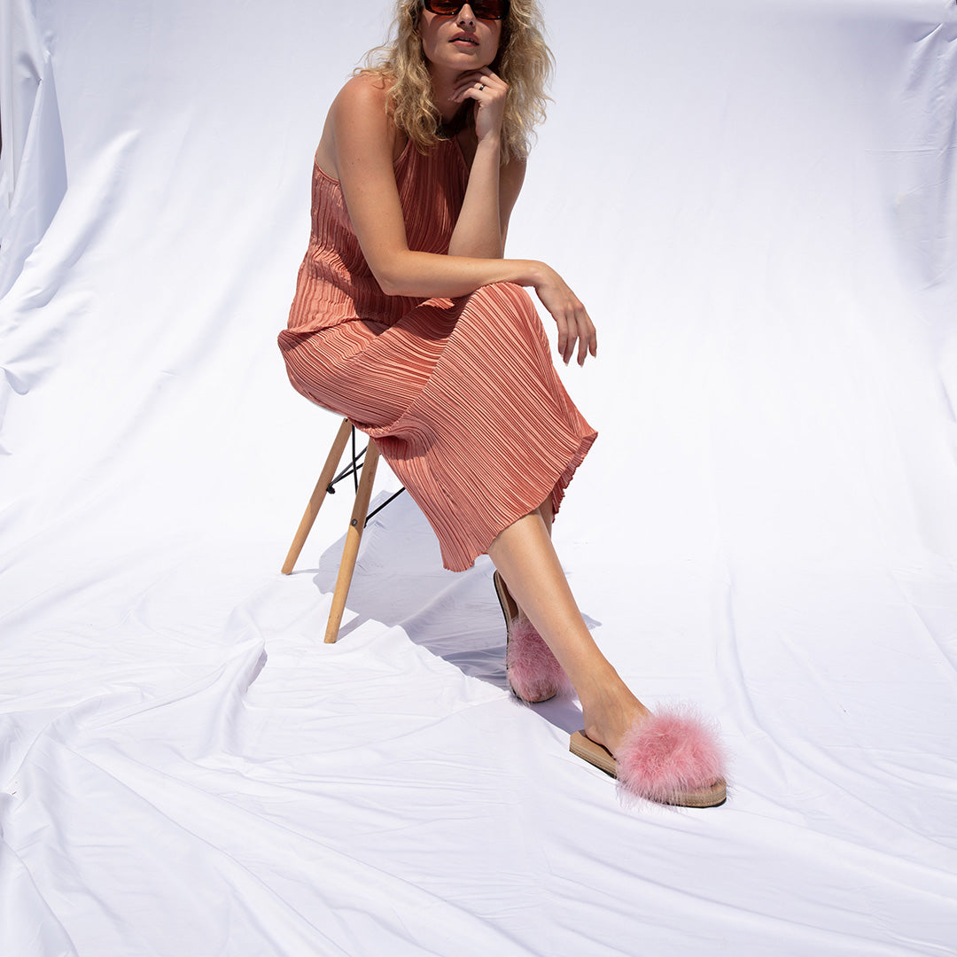 Pink Feather - Espadrille Flat Womens Slipper Slide