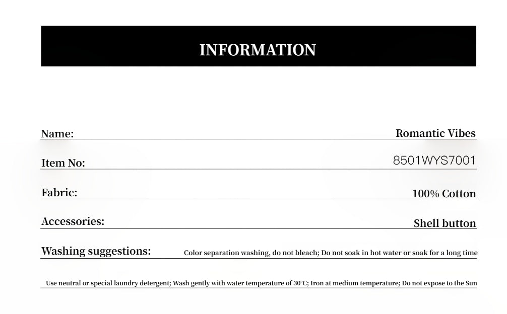 High-quality long-staple cotton fiber is skin-friendly and breathable, soft and bony. The fabric is clean and smooth, with a slightly brushed texture. The delicate fermentation washing process allows the fabric to shrink naturally to form a slightly wrinkled texture, adding visual layers. High-quality craftsmanship, clear and natural colors, not easy to fade, bringing a simple and high-end ready-to-wear visual style.