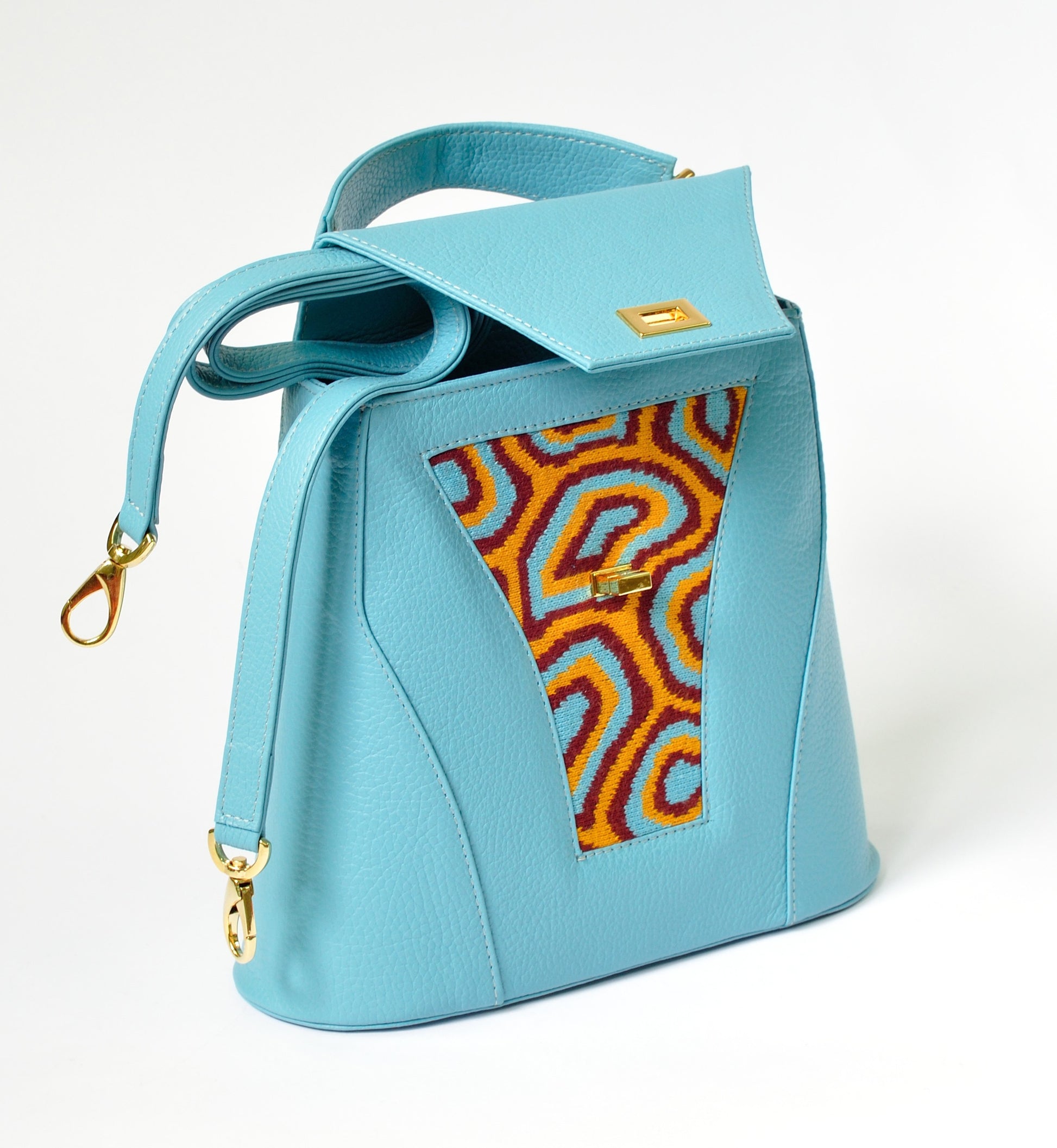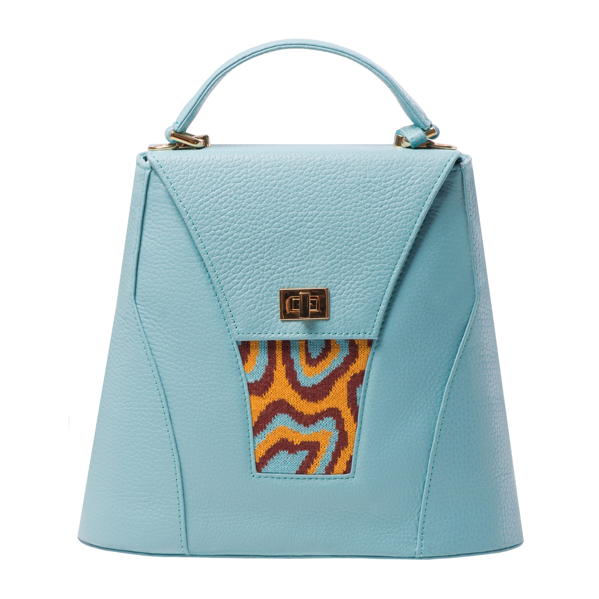 TATI BODUCH Designer Handbag, AGATE Collection, Genuine Leather: Turquise, Knitwear: Turquise