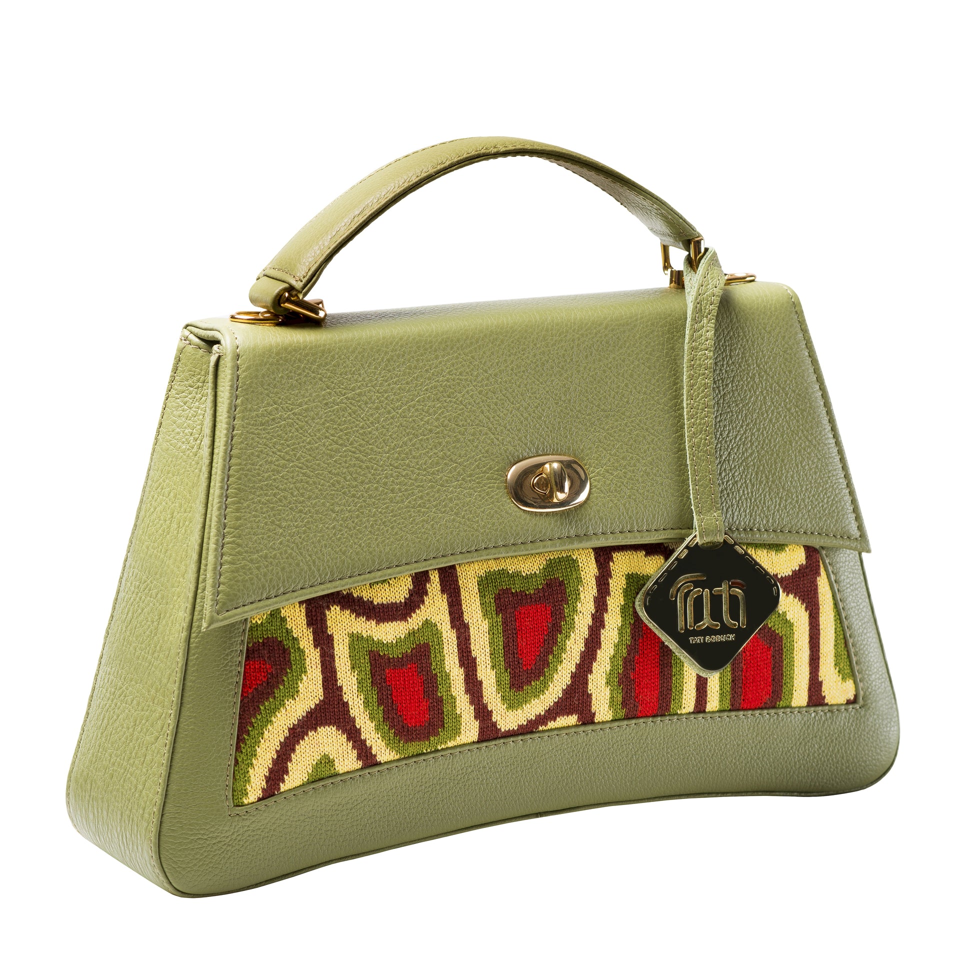 TATI BODUCH Designer Handbag, JASPER Collection, Genuine Leather: Yellow, Knitwear: Green