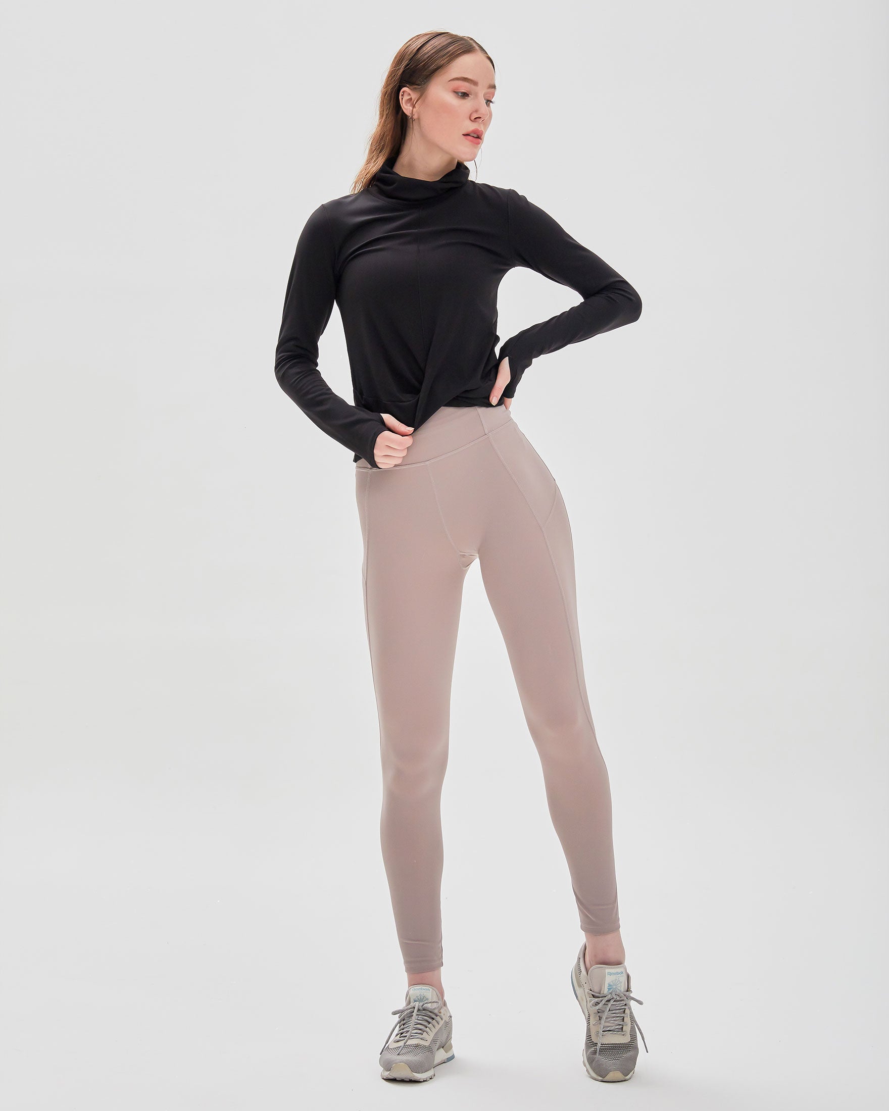 The cowl neck, thumbholes, and the mid crop length makes this top easy to wear during chilly days. The front criss coss details make this top versatile to wear for travel, commute, and light to medium impact activites from walking to hiking. Get your regular size for a more fitted look or size up for a more relaxed and comfortable fit. Made in our Coziplex fabric which is a buttery soft compression feels like second skin. Wicks moisture and is 4 way stretch to get you through your daily activities.