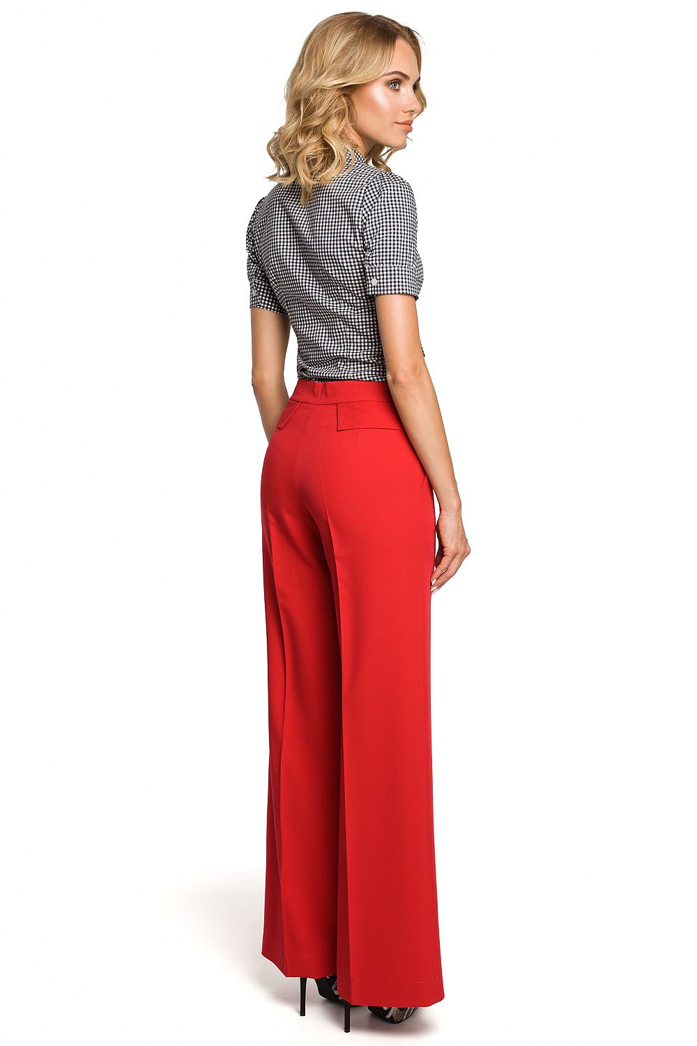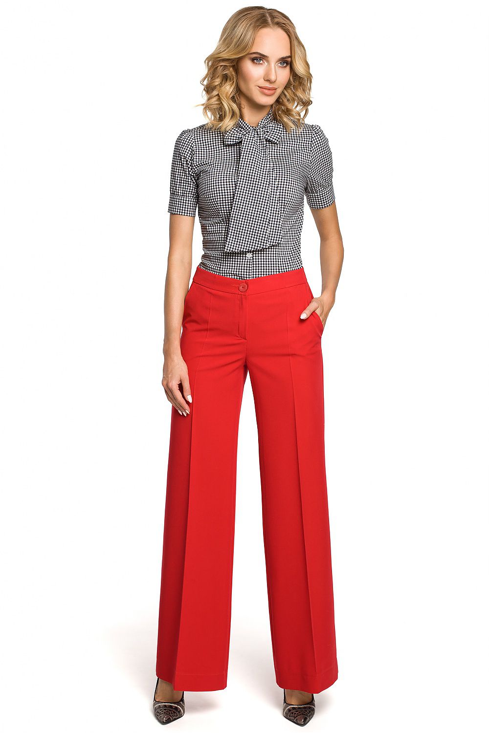 A timeless cut of trousers with wide legs, perfect both with pumps and flat shoes, for every day and on holidays. Trousers with zipper and button closure.